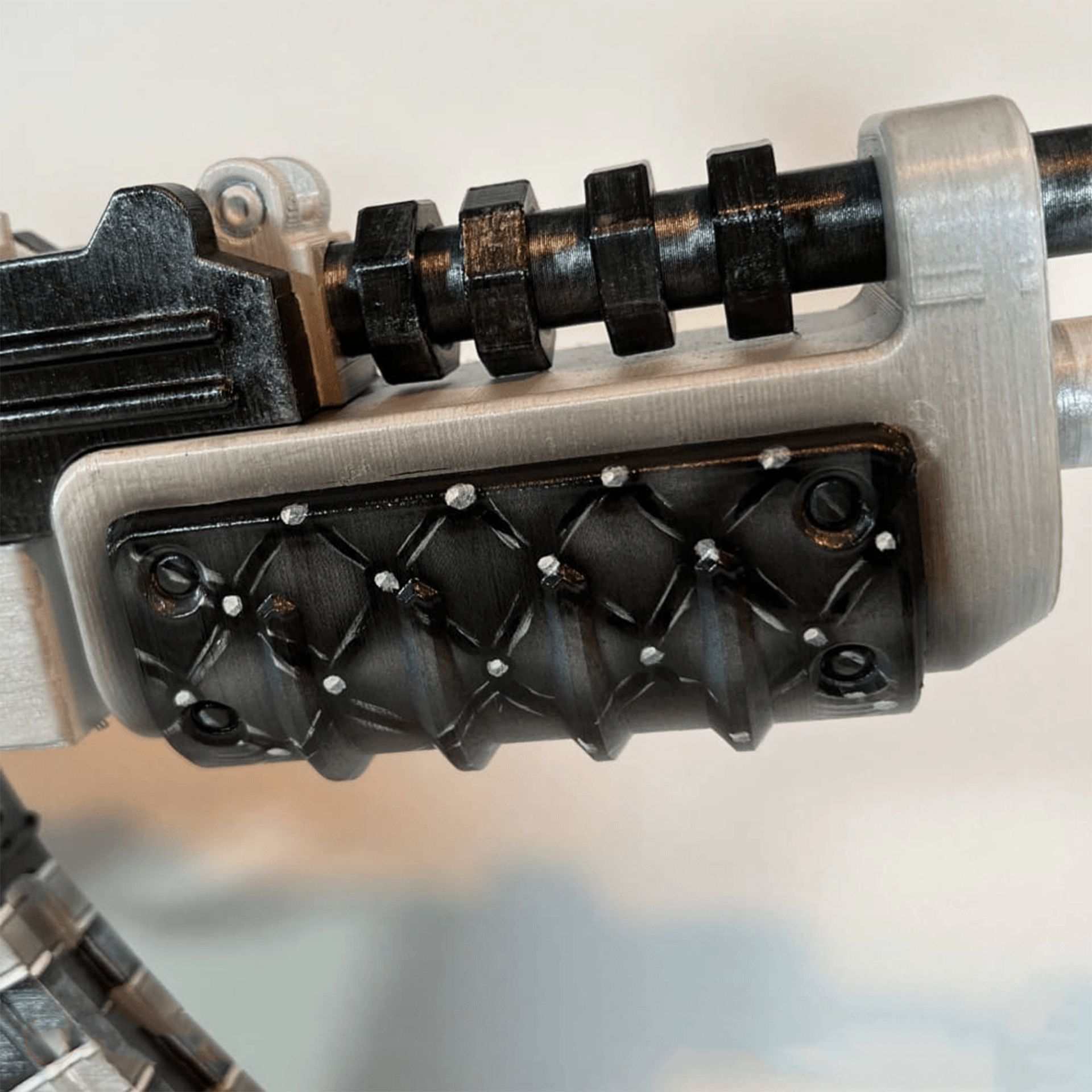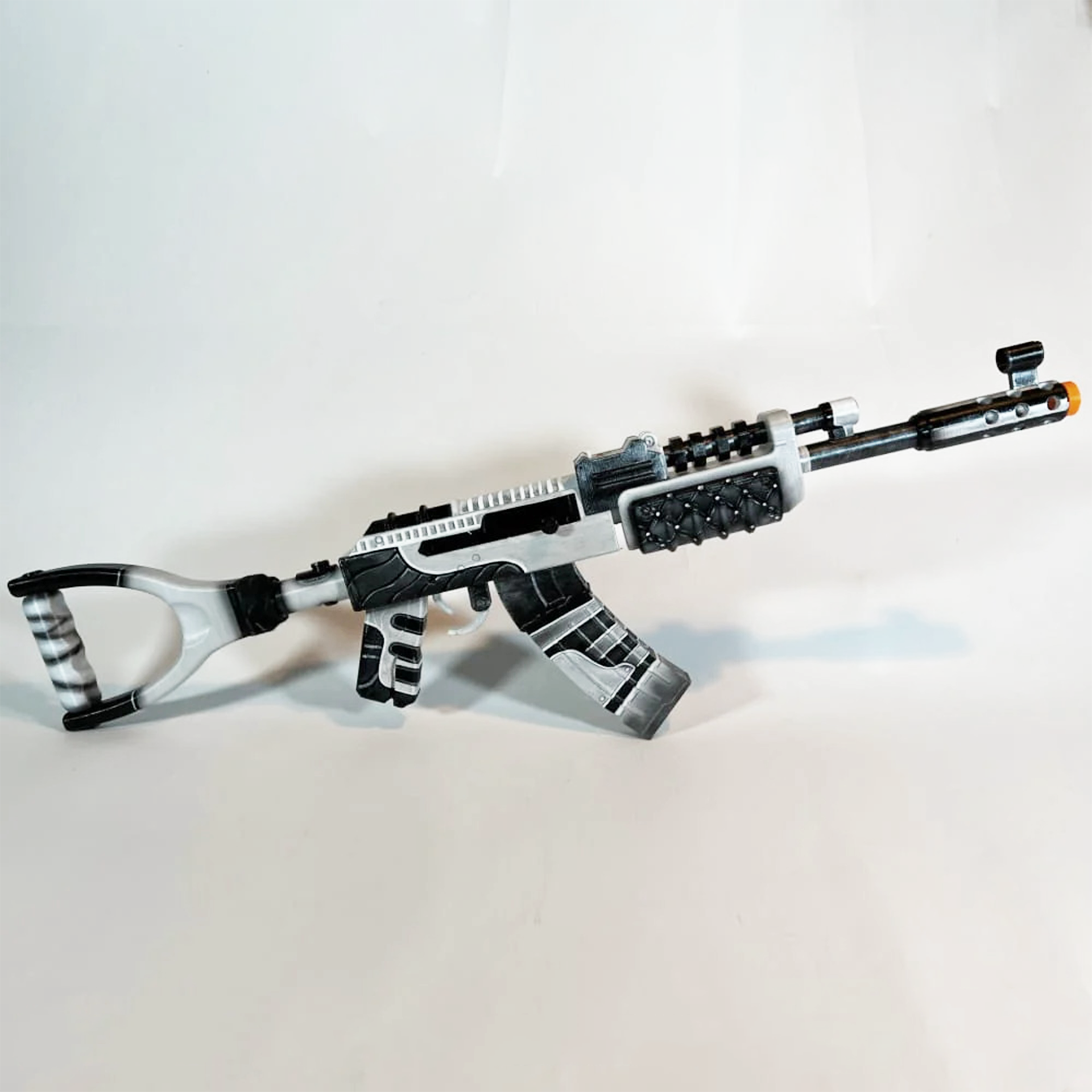 Rust Assault Rifle Toy built with a removable magazine, removable stock and clickable trigger. High quality paint and a sturdy build suitable for displaying on flat surfaces or using as a real replica.